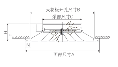 1.多层锥体结构,一般安装于冷暖房的天花板上,其吹出气流属贴附型,具有内部诱导性佳,送风温差大,吹出气流均匀,能抑制体感气流等特点。