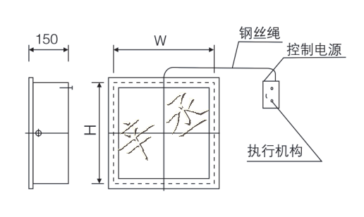 1.平时呈常闭状态,火灾时烟感器通过控制中心发来电气信号(DC24V),执行机构内的电磁铁通电动作,阀门自动开启并输出开启信号,阀门动作后手动钢丝绳远距离复位。