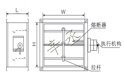 1.平时呈常开状态,火灾时烟(温)感器通过控制中心发来电气信号(DC24V),执行机构内的电磁铁通电动作,阀门自动关闭并输出关闭信号,阀门动作后电动复位。
