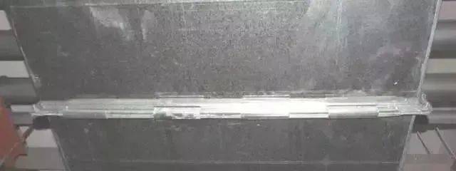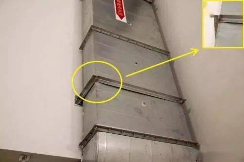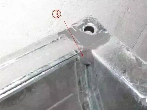 ③ 共板法兰风管四角制作豁口应该打胶严密,打胶应该抹平整,不出现堆叠现象。