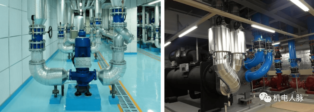 顺水三通相比普通三通具有水流阻力小,减小水流扰动等优点,因此制冷机房管道采用顺水三通有利于降低噪声,减小泵组运行负荷。