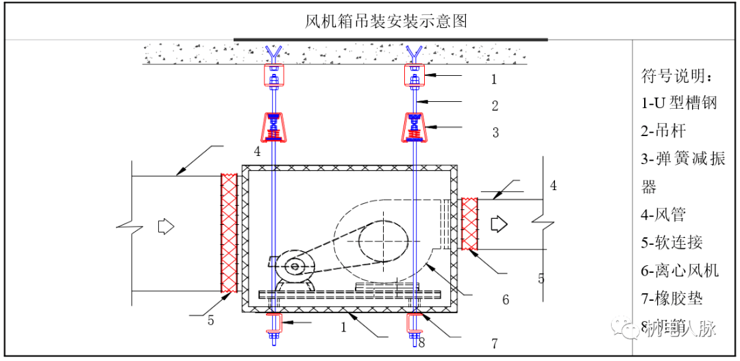 风机盘管与吊杆之间采用橡胶板进行隔开,降低降噪减少震动。