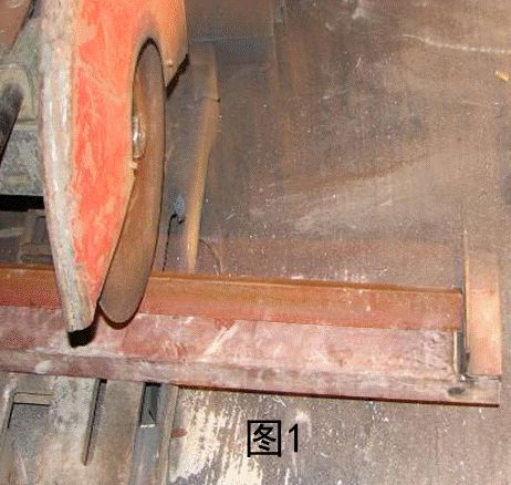 2、在10#槽钢上量取需下料尺寸,与机械切割台调平,与切割片调垂直,固定在切割机械上。然后进行批次下料,保证下料尺寸正确统一(见下图1)。