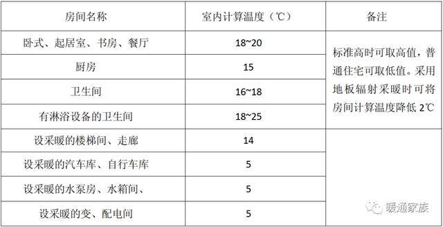 3)室内采暖计算温度可按下表: