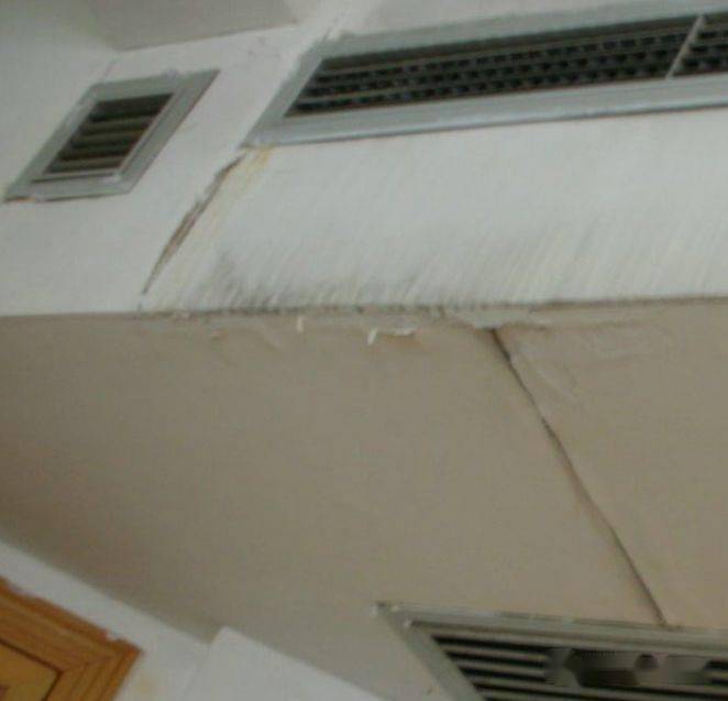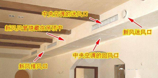 出风口一般为方形散流器,呈方行多层可拆卸,一般用防火帆布连接;送冷风时时水珠挂在上面!有回风口多呈长方形,有称单(双)层百叶风口,并带有过滤网;主要作用在于把污浊的空气吸回去。新风口则较小,每个房间贴墙安装或是于送风口呈直线的必是新风口无疑!