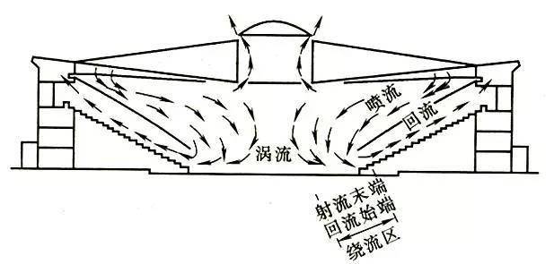 在室内的气流流场中,回风口汇流的影响范围很小,影响室内气流运动规律和室内空气参数分布的主要因素是送风射流。