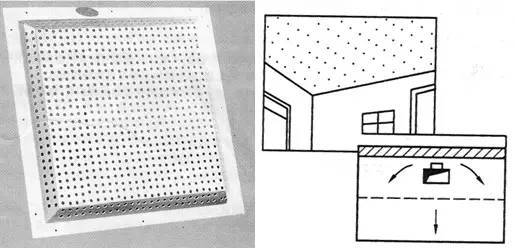 送风速度3m/s以上全面孔板,送风温差大于等于3℃,出现平行流,适于超静音空调要求。小风速、衰减好,舒适度高。送风均匀,速度衰减快。