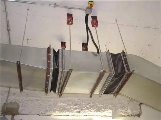 9、阀门等部件要与风管同时组对一起吊装,调节阀等安装在便于操作位置,防火阀是系统安全装置,有水平、垂直、左、右式区别,安装时不得弄错,为防止易熔片脱落,安装时格外小心,当安装在垂直气流风道中的防火阀时,易熔片一端必须向关闭方向倾斜5度。