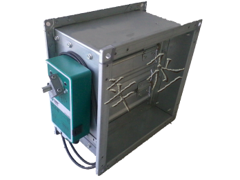 (2)风量调节阀阀体构架用2毫米镀锌板冷轧成型后,以二氧化碳气体保护焊接或由普通Q235板加工焊接而成;叶片用1.2毫米镀锌板冷轧为瓦楞形,两片合成点焊插方轴,或2毫米G235钢板冷压成形,单片冲孔插方轴或焊圆轴。